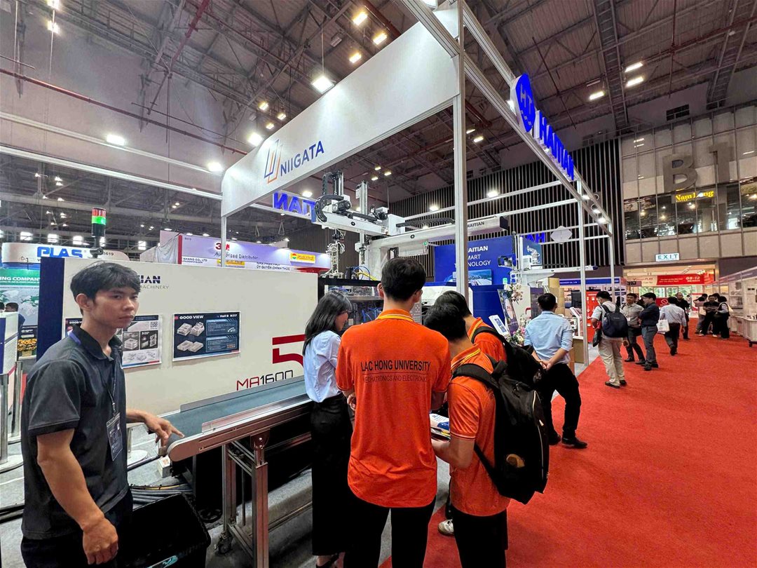 • Tiếp cận công nghệ tự động hóa và IoT trong sản xuất: nhiều gian hàng giới thiệu dây chuyền tích hợp robot công nghiệp, cảm biến theo dõi chất lượng, hệ thống điều khiển thông minh kết nối dữ liệu. Đây chính là những nội dung gắn bó mật thiết với các học phần mà sinh viên đang theo học như Điều khiển tự động, Hệ thống cơ điện tử, Vi xử lý – Vi điều khiểnRobot công nghiệp.