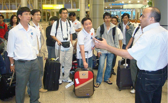 Đúng 20h50 tối hôm qua, ngày 18/09/2010, đoàn Robocon Lạc Hồng đã cất cánh trên chuyến bay của hãng hàng không quốc gia Thái Lan để đến thủ đô Cairo – AiCập tham dự cuộc thi “Sáng Tạo Robot Châu Á Thái Bình Dương 2010”. Để đến được thủ đô Cairo, đoàn phải bay qua cảng hàng không SUVARNABHUMI của Thái Lan rồi từ đó mới có chuyến bay qua Cairo. Tại Thái Lan – đoàn đã gặp gỡ, trao đổi với đoàn Robocon Thái Lan và Trung Quốc cũng đi trên cùng chuyến bay. Đúng 10h ngày 19/09/2010 (giờ VN) tức 6h sáng (giờ Aicập) đoàn đã có mặt tại khách sạn.