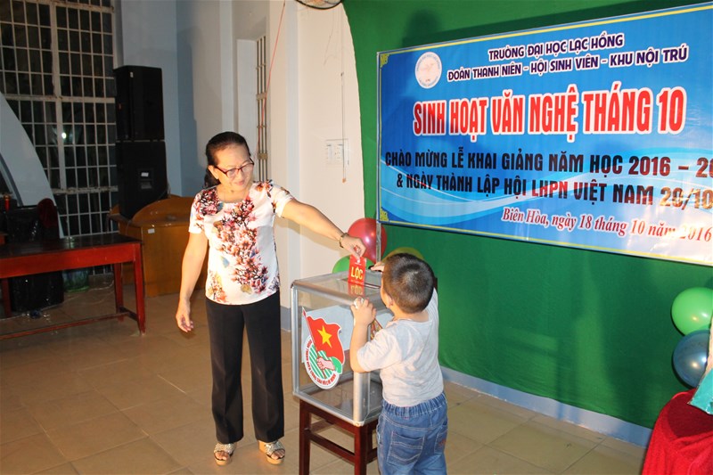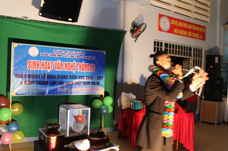 Chào mừng Lễ Khai giảng năm học 2016 – 2017 và Ngày Phụ nữ Việt Nam 20/10. Đoàn Thanh niên – Hội Sinh viên trường Đại học Lạc Hồng kết hợp với Khu Nội trú tổ chức đêm sinh hoạt văn nghệ chào mừng. Đến dự buổi sinh hoạt có NGƯT. Lê Thị Hiếu – Trưởng ban Quản Lý Khu Nội trú, Đ/c Lê Sơn Quang – Bí thư Đoàn trường, Đ/c Trần Tiến – Chủ tịch Hội Sinh viên trường.