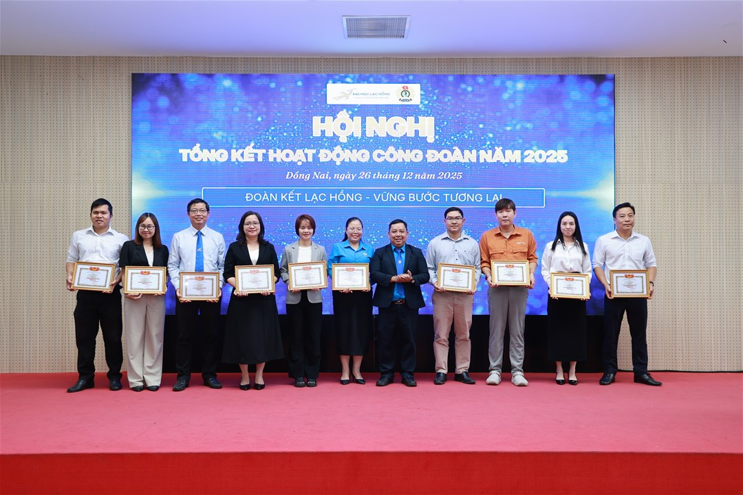 Nhằm ghi nhận và biểu dương những nỗ lực, đóng góp tích cực của các tập thể và cá nhân trong năm học 2024 – 2025, Công đoàn Trường đã tiến hành khen thưởng 59 công đoàn viên xuất sắc và 08 Tổ Công đoàn xuất sắc. Đây là sự động viên kịp thời, góp phần lan tỏa tinh thần trách nhiệm, nhiệt huyết và gắn bó của đội ngũ NGNLĐ đối với sự phát triển chung của Trường Đại học Lạc Hồng.