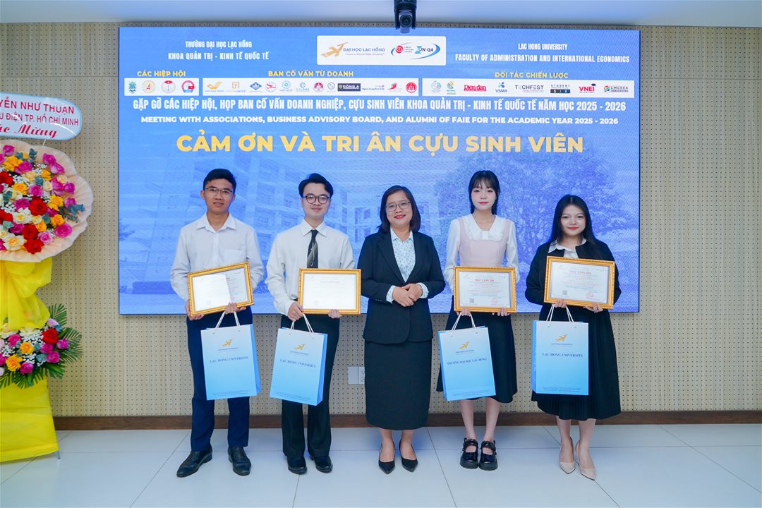 Sáng ngày 21/01/2026, tại Phòng họp cơ sở 1 Trường Đại học Lạc Hồng, Khoa Quản trị - Kinh tế Quốc tế (QT-KTQT) đã tổ chức thành công chương trình “Gặp gỡ các hiệp hội, họp ban cố vấn doanh nghiệp, cựu sinh viên năm học 2025 – 2026”. Sự kiện là cầu nối quan trọng nhằm gắn kết tri thức giảng đường với thực tiễn doanh nghiệp, đồng thời mở ra nhiều cơ hội hợp tác chiến lược trong tương lai.