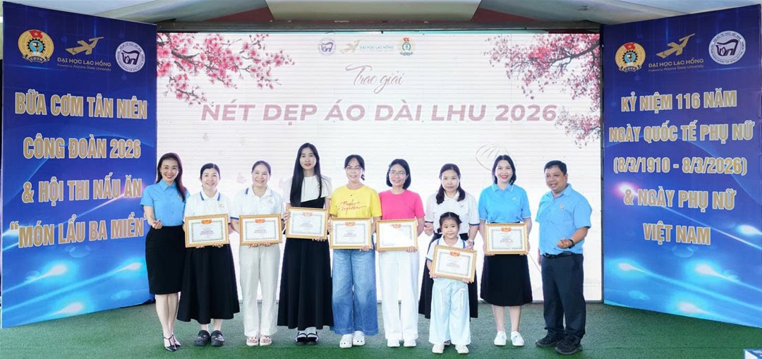 Sáng ngày 07/03/2026 tại Hội quán Trấn Biên, Công đoàn Trường Đại học Lạc Hồng phối hợp cùng Hội Nữ trí thức đã tổ chức Lễ trao giải Cuộc thi ảnh “Nét đẹp Áo dài LHU năm 2026”. Sự kiện là đóa hoa tươi thắm chào mừng 116 năm Ngày Quốc tế Phụ nữ (08/3) và Ngày Quốc tế Hạnh phúc.