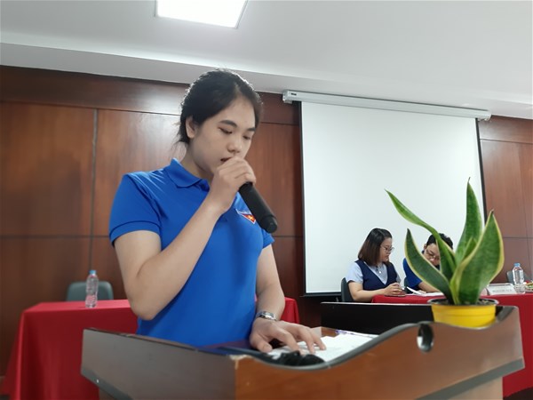 Thay mặt Đoàn Khoa Tài chính – Kế toán, Đồng chí Lê Thị Thanh Trà đã tổng kết nhiệm kỳ 2018 – 2019.