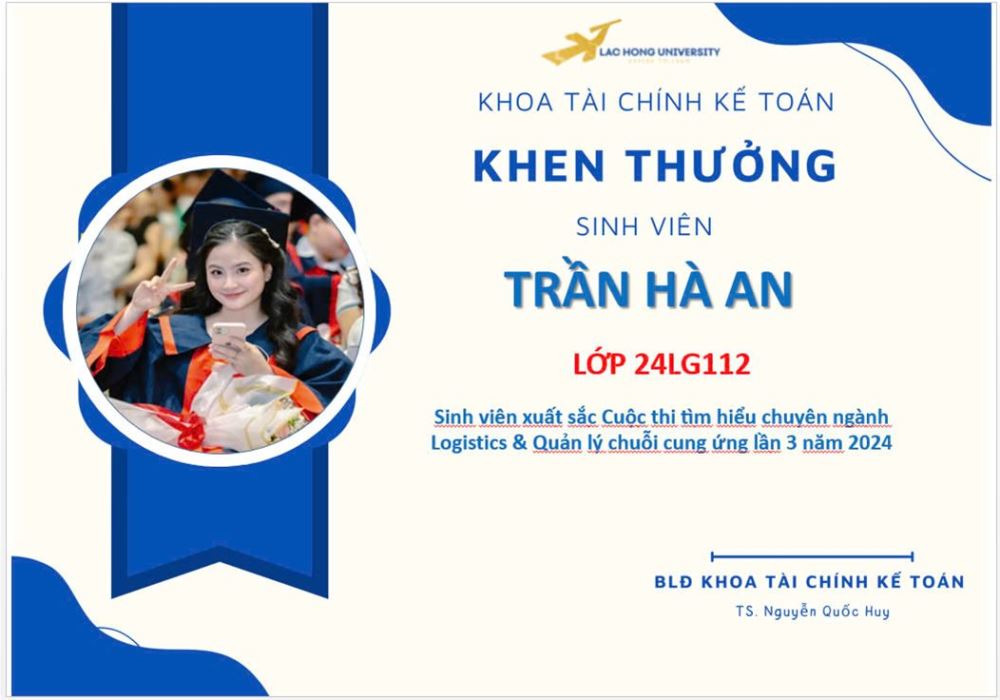 Xin chúc mừng các tân sinh viên đã đạt thành tích cao trong cuộc thi. Khoa Tài chính - Kế toán hy vọng các bạn sẽ tiếp tục phát huy tinh thần học tập, không ngừng phấn đấu để đạt được những thành công lớn hơn trong ngành Logistics và Quản lý chuỗi cung ứng!