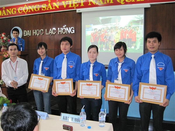Đ/c Trần Tiến - Phó Bí thư thường trực Đoàn trường trao giấy khen cho các tập thể hoàn thành xuất sắc nhiệm vụ nhiệm kỳ 2009-2010