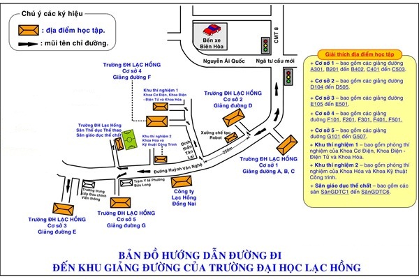 Trường Đại học Lạc Hồng tọa lạc tại số 10 Huỳnh văn Nghệ, phường Trấn Biên, tỉnh Đồng Nai. Hầu hết các cơ sở của trường đều nằm trên trục đường Huỳnh Văn Nghệ nên rất dễ dàng tìm kiếm và di chuyển giữa các cơ sở. Để tiếp cận các cơ sở trực thuộc LHU, các bạn sinh viên có thể lựa chọn các loại phương tiện khác nhau như xe đạp, xe máy, xe buýt,...Tuy nhiên, đối với các bạn ở các địa phương khác, không thuộc địa bàn tỉnh Đồng Nai có thể gặp khó khăn trong việc di chuyển và tìm đường. Các bạn có thể tham khảo một số tuyến xe buýt dưới đây. Bến xe Tp. Biên Hòa cách Trường Đại học Lạc Hồng khoảng 1 km. Từ bến xe này, các bạn có thể bắt xe ôm tới trường hoặc đi bộ đến ngã tư khoảng 200m rồi rẽ phải và bắt tuyến xe buýt số 7. Tuyến này sẽ lần lượt đi qua các cơ sở 1, 2, 3, 4, 5 và 6 của trường.