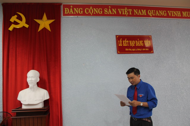 Hình 3: Đ/c Phan Thế Anh đọc tuyên thệ tại buổi lễ kết nạp đảng viên