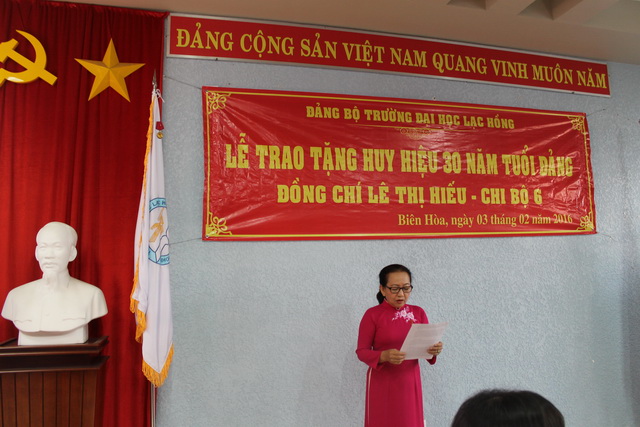 Ngày 03/02/2016, Đảng bộ trường Đại học Lạc Hồng đã long trọng tổ chức Lễ trao tặng Huy hiệu 30 năm tuổi Đảng cho đồng chí Lê Thị Hiếu – Phó Bí thư Chi bộ 6,  Đảng bộ trường Đại học Lạc Hồng.