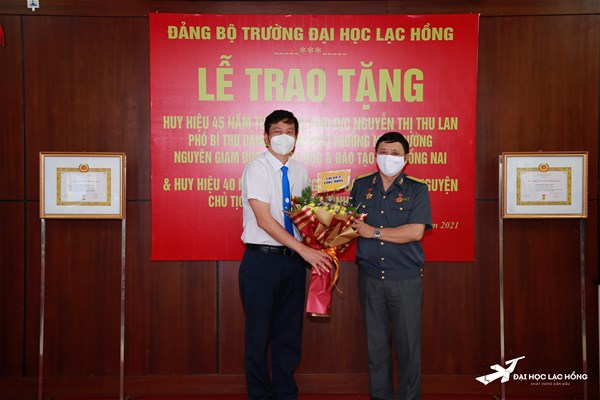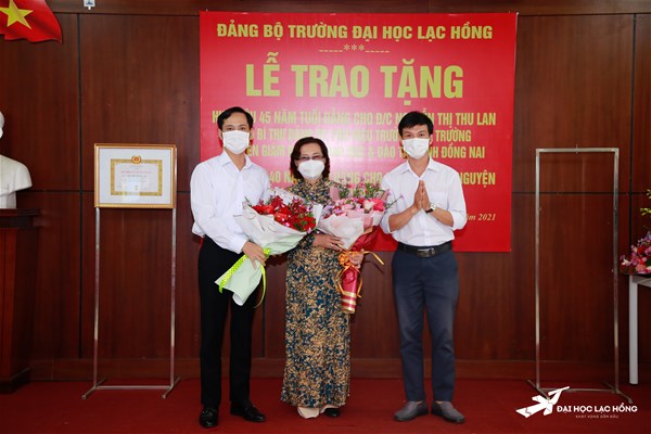 Tại buổi Lễ trao huy hiệu Đảng lần này, Đảng ủy Trường Đại học Lạc Hồng đã tổ chức trao Huy hiệu 45 năm tuổi Đảng cho Đ/c Nguyễn Thị Thu Lan - Phó Bí thư Đảng ủy trường, Phó Hiệu trưởng nhà trường; Nguyên Giám đốc sở Giáo dục & Đào tạo, Nguyên Giám đốc Sở Ngoại vụ tỉnh Đồng Nai và Huy hiệu 40 năm Tuổi Đảng cho Đ/c Trần Văn Nguyện - Chủ tịch Hội Cựu chiến binh nhà trường.