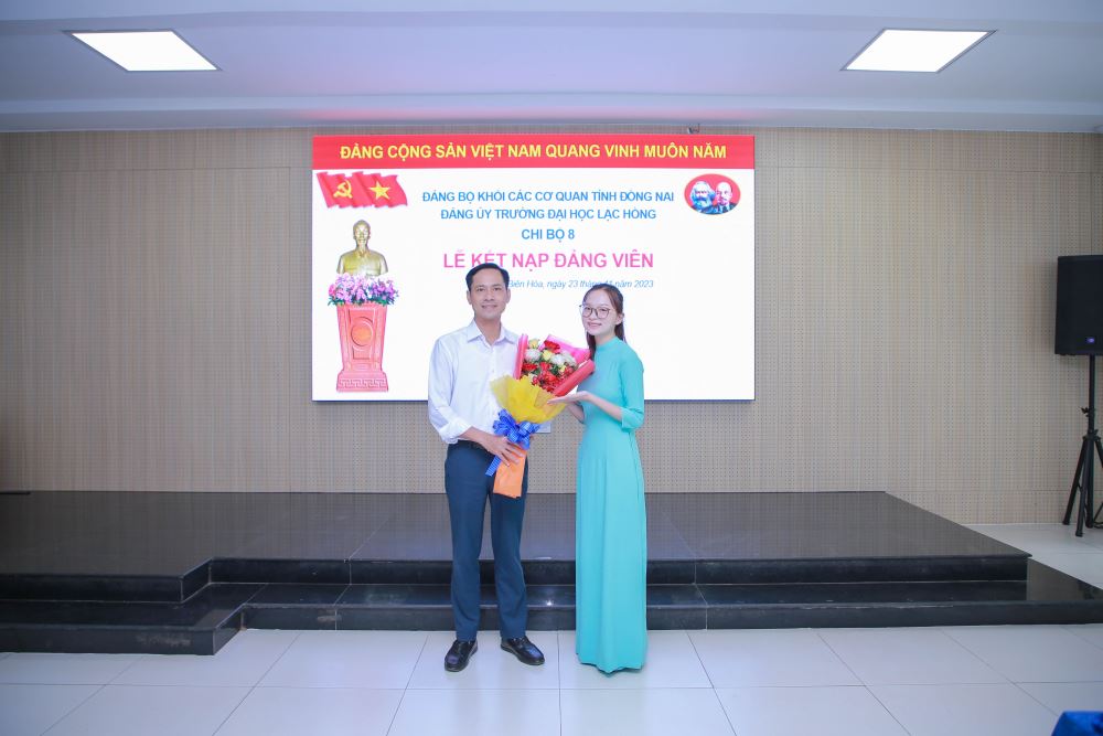Được sự đồng ý của Đảng ủy khối các cơ quan tỉnh Đồng Nai và Ban Thường vụ Đảng ủy trường; Sáng ngày 23/11/2023 tại phòng họp cơ sở 1, Chi bộ 8 đã tổ chức Lễ kết nạp đảng viên cho quần chúng Vi Hoài Thương - Sinh viên lớp 22EC111, khoa Công nghệ Thông tin và Hoàng Như Quỳnh - Sinh viên lớp 20DS111, khoa Dược vào Đảng Cộng sản Việt Nam.
