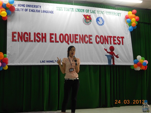 Để hưởng ứng các phong trào do Đoàn trường phát động nhân dịp chào mừng 81 năm ngày thành lập Đoàn TNCS Hồ Chí Minh ( 26/03/1931 – 26/03/2012), Đoàn – hội sinh viên Khoa Ngôn Ngữ Anh đã tổ chức cuộc thi “Hùng biện tiếng Anh” nhằm tạo sân chơi học thuật bổ ích, phát huy khả năng thuyết trình của sinh viên trước đám đông cũng như tạo cơ hội cho sinh viên thể hiện tài năng, sự năng động, sáng tạo và tự tin trong môi trường tiếng Anh. Vào lúc 8h ngày 24 tháng 03 năm 2012, tại Giảng đường A301, vòng chung kết cuộc thi “Hùng biện tiếng Anh” đã diễn ra cùng sự tranh tài của 10 thí sinh xuất sắc vượt qua vòng sơ loại diễn ra ngày 17 tháng 03 vừa qua. Buổi thi có sự góp mặt của toàn thể giảng viên trong khoa cùng sự cổ vũ nồng nhiệt của hơn 200 sinh viên đến từ các lớp. Với chủ đề “Thanh niên và văn hóa giao thông”, Khoa Ngôn ngữ Anh muốn gửi thông điệp đến sinh viên toàn trường về việc nâng cao ý thức thực hiện an toàn giao thông thông qua phần hùng biện của các thí sinh về những vấn đề liên quan như: Phản ứng của thanh niên với tai nạn giao thông, Giao thông Việt Nam trong mắt người ngoại quốc, Nạn ách tắc giao thông, tai nạn giao thông và nhận thức của con người…Mỗi đề tài đều mang lại những ý nghĩa sâu sắc và đọng lại trong suy nghĩ của mỗi bạn sinh viên về vấn đề giao thông – vấn đề nóng nhất và mang tính thời sự nhất hiện nay. Kết thúc cuộc thi, Ban tổ chức đã trao 1 giải nhất, 1 giải nhì, 1 giải ba, 2 giải khuyến khích cùng 5 giải dành cho các bạn sinh viên có đóng góp tích cực cho cuộc thi và bước vào vòng chung kết ngày hôm nay. Sau đây là một số hình ảnh của cuộc thi: