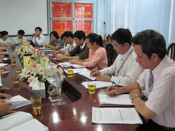 Buổi sáng ngày 09/8/2012 Phòng NCKH-SĐH-KĐCL có tổ chức buổi họp về công tác Nghiên cứu khoa học trong năm học 2012-2013 với Khoa Tài chính- Ngân hàng.