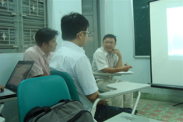 TS. Nguyễn Văn Tân góp ý cho các đề tài tại buổi báo cáo