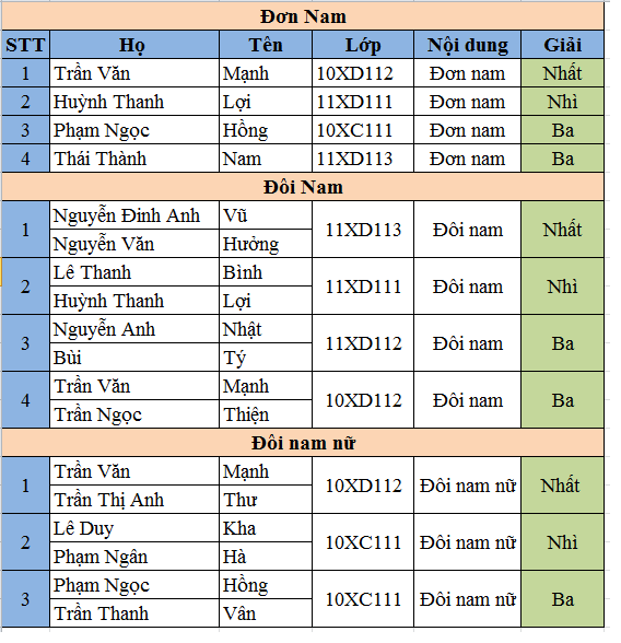 Tuy lần đầu tổ chức nhưng đã thu hút rất nhiều các bạn đoàn viên thanh niên trong Khoa và Trường tham gia và cổ vũ. Kết thúc giải chọn ra được nhiều gương mặt nổi bật về lĩnh vực cầu lông. BTC xin cảm ơn các VĐV và các bạn sinh viên trong Khoa đặt biệt là cổ động viên của 2 lớp 11XC111 - 10XD112 và 10KT116 đã nhiệt tình cổ vũ cho giải.