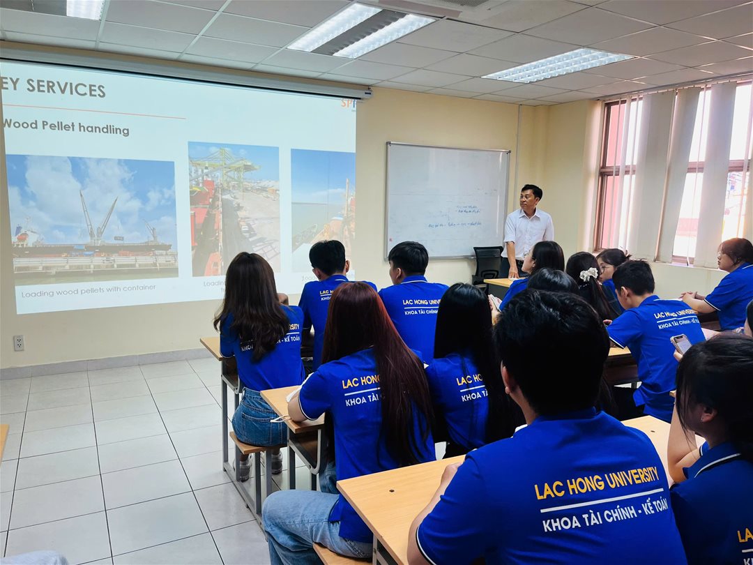On the morning of December 16, 2025, the Faculty of Finance and Accounting, Lac Hong University organized a practical field visit and experiential learning activity for students of class 25LG114, majoring in Logistics and Supply Chain Management, at the SP-PSA International Container Port. The activity aimed to provide students with direct exposure to the port logistics working environment, thereby enhancing their ability to apply theoretical knowledge to real-world professional practice.