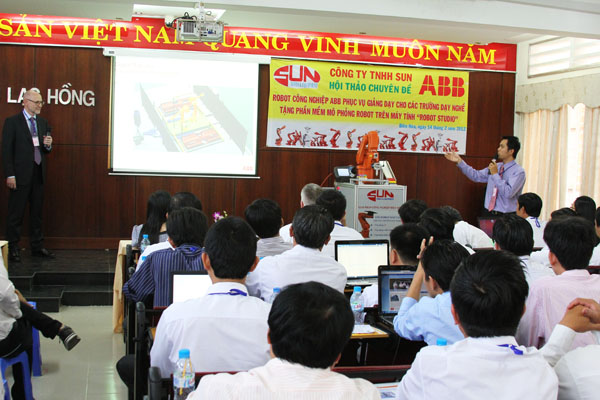 A seminar on ABB industrial robots serving teaching for vocational schools took place on February 14 at Lac Hong University with the participation of 55 nationwide universities, colleges and technical colleges. The seminar was organized by Sun Company Limited (a leading supplier of industrial robots, automobile accessories in Viet Nam) in cooperation with Lac Hong University.