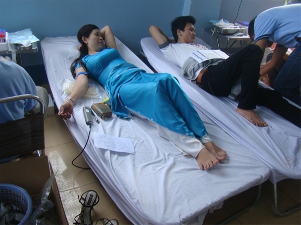 The blood donation campaign attracts the great participation of students.