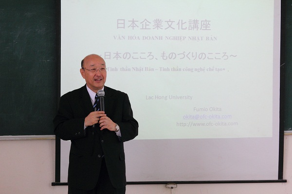 Presenting at the seminar, "We had worked with some Japanese enterprises. They said that students of LHU in spite of good qualifications and skills have less knowledge about culture and behavior in Japanese enterprises. This urged me to find out information about LHU. Finally I got an idea of meeting to bring Japanese business culture to students of LHU.", said Mr. Fumio Okita.