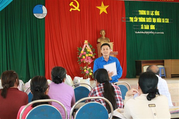 Comrade Vo Ngoc Vinh on behalf of LHU speaks at the handing over ceremony in Cam My district.