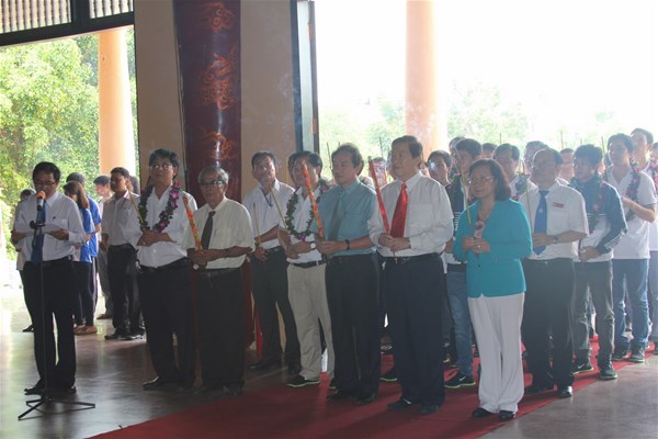 The delegation burned incenses at Tran Bien Temple of Literature.