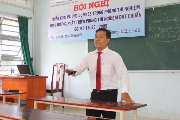 All staff in charge of managing laboratory systems on Sept 6 gathered at room G202 - campus 5 to attend the conference "Deploying and applying 5S methodology in labs management and Developing Labs meeting ISO/IEC 17025: 2005" held by LHU's  Application and Scientific Research Center. Participants were instructed by Mr. Nguyen Thanh Phong - ISO/IEC Staff of Perfetti Company and Le Phu Dong, MSc. - lecturer of Chemical and Environmental Engineering Faculty.