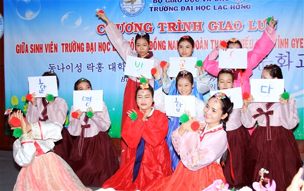 In the morning of Sept 27, nearly 100 students of Oriental Studies Faculty - Lac Hong University had an exchange program with Gyeongnam province's youth delegation at the campus 1.