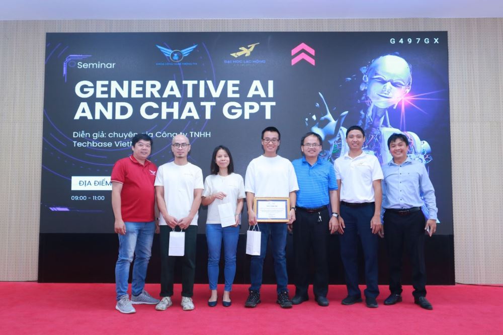 Under the special collaboration between the Faculty of Information Technology, LHU and Techbase VN Company Limited, the seminar "Generative AI and Chat GPT" was held on March 21, 2024 at Auditorium A301, attracting the participation of many students and lecturers, marking a new step in accessing and applying the most advanced technologies in learning, teaching and research.