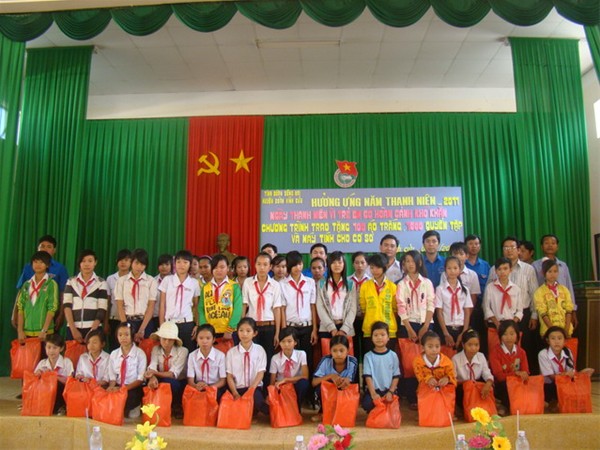 In response to the Year of Youth - 2011 and the campaign Youth Day for children in difficult circumstances, the Standing Committee of Lac Hong University’s Union in cooperation with the Ho Chi Minh Communist Youth Union of Dong Nai held a program to present gifts to poor but studious children and difficult areas in Phu Ly Commune, Vinh Cuu District , Dong Nai Province.
