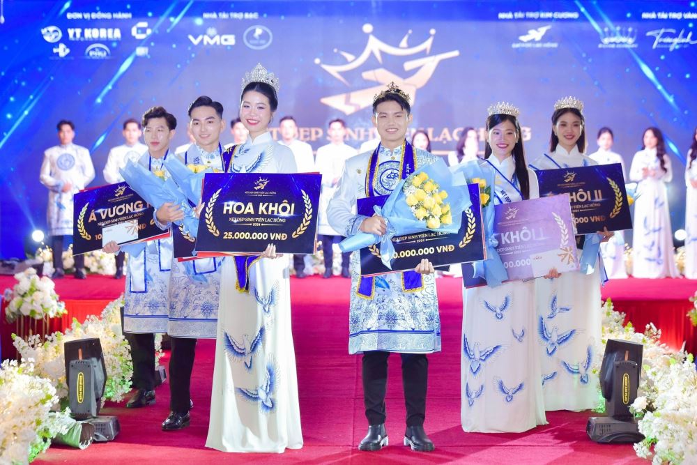 The LHU Student Beauty Contest was launched from March 12 and lasted for over two months with three main rounds: preliminary, semifinal and final. 20 best contestants were selected for the final round to compete in the categories of traditional costumes (Ao dai by designer Tuan Hai), evening gowns and question-and-answer sessions.