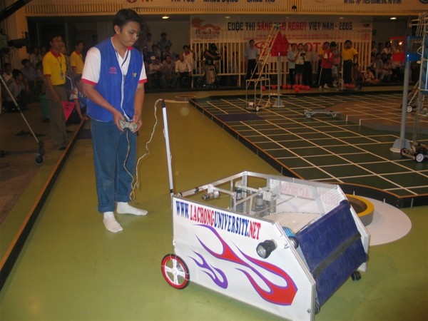 Nguyễn Trí Khiêm đang điều khiển Robot bằng tay tại cuộc thi Robocon năm 2005