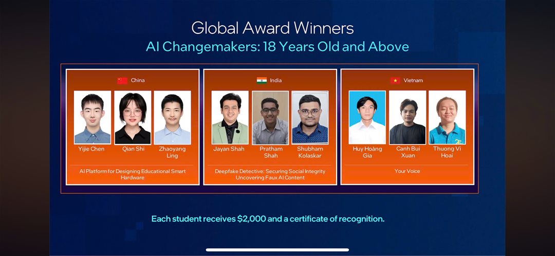 Intel AI Global Impact Festival là một sự kiện học thuật – công nghệ uy tín, thu hút hơn 1000 dự án tham dự từ 33 quốc gia, với 109 sáng kiến lọt vào vòng chung kết toàn cầu.
