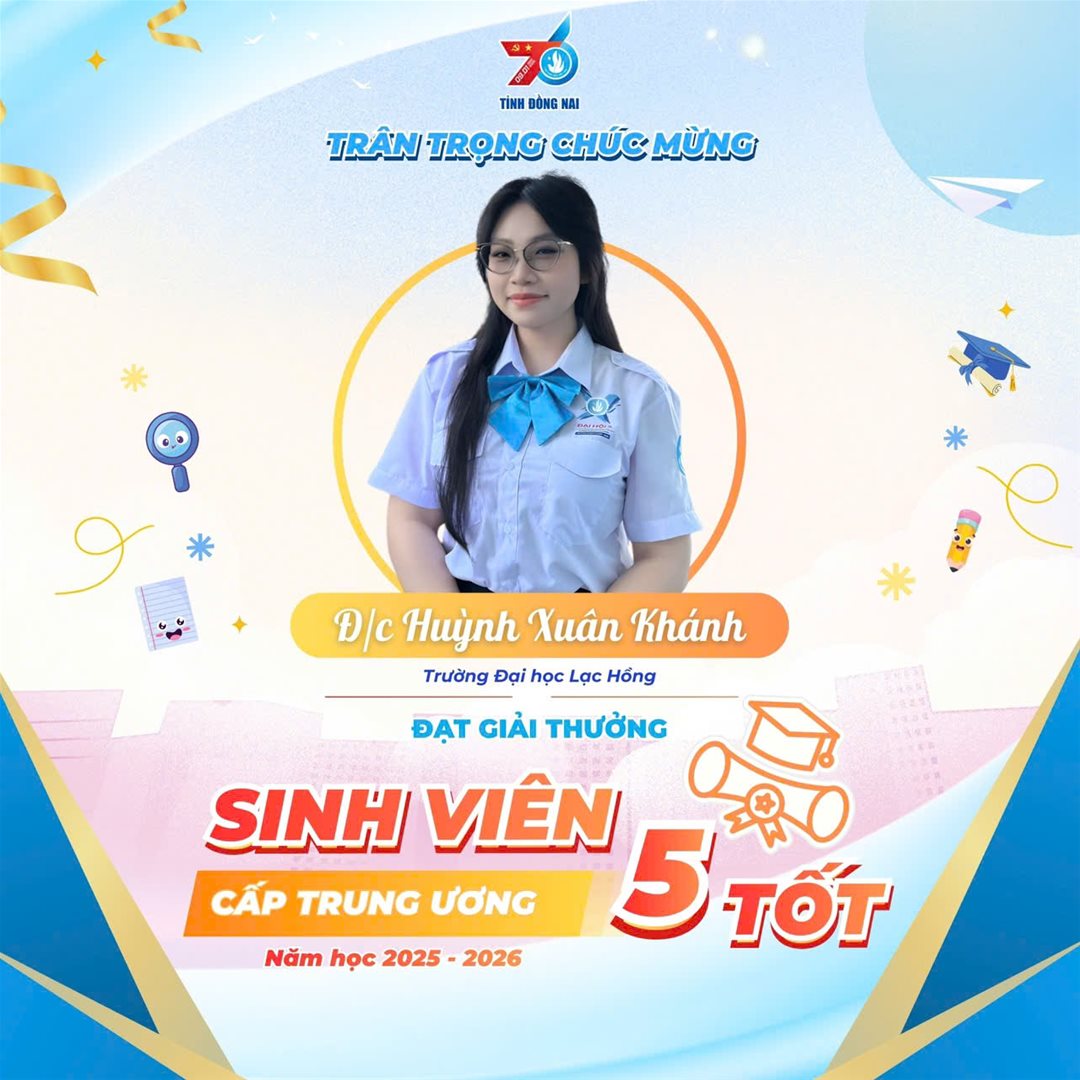 Đây là danh hiệu cao quý, ghi nhận quá trình phấn đấu bền bỉ, không ngừng rèn luyện và phát triển toàn diện của sinh viên trên năm tiêu chí: Đạo đức tốt – Học tập tốt – Thể lực tốt – Tình nguyện tốt – Hội nhập tốt. Thành tích này không chỉ là sự khẳng định cho nỗ lực cá nhân xuất sắc của sinh viên Huỳnh Xuân Khánh, mà còn thể hiện tinh thần học tập nghiêm túc, bản lĩnh, trách nhiệm và khát vọng cống hiến của sinh viên Trường Đại học Lạc Hồng.