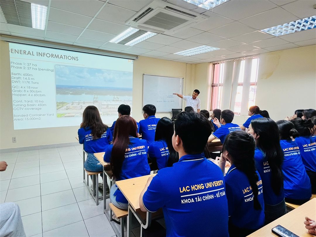 Sáng ngày 16/12/2025, Khoa Tài chính – Kế toán, Trường Đại học Lạc Hồng đã tổ chức cho sinh viên lớp 25LG114 – ngành Logistics & Quản lý chuỗi cung ứng tham gia chuyến tham quan và học tập thực tế tại Cảng Container Quốc tế SP-PSA. Hoạt động nhằm giúp sinh viên tiếp cận trực tiếp môi trường làm việc của logistics cảng biển, qua đó nâng cao khả năng vận dụng kiến thức đã học vào thực tiễn.