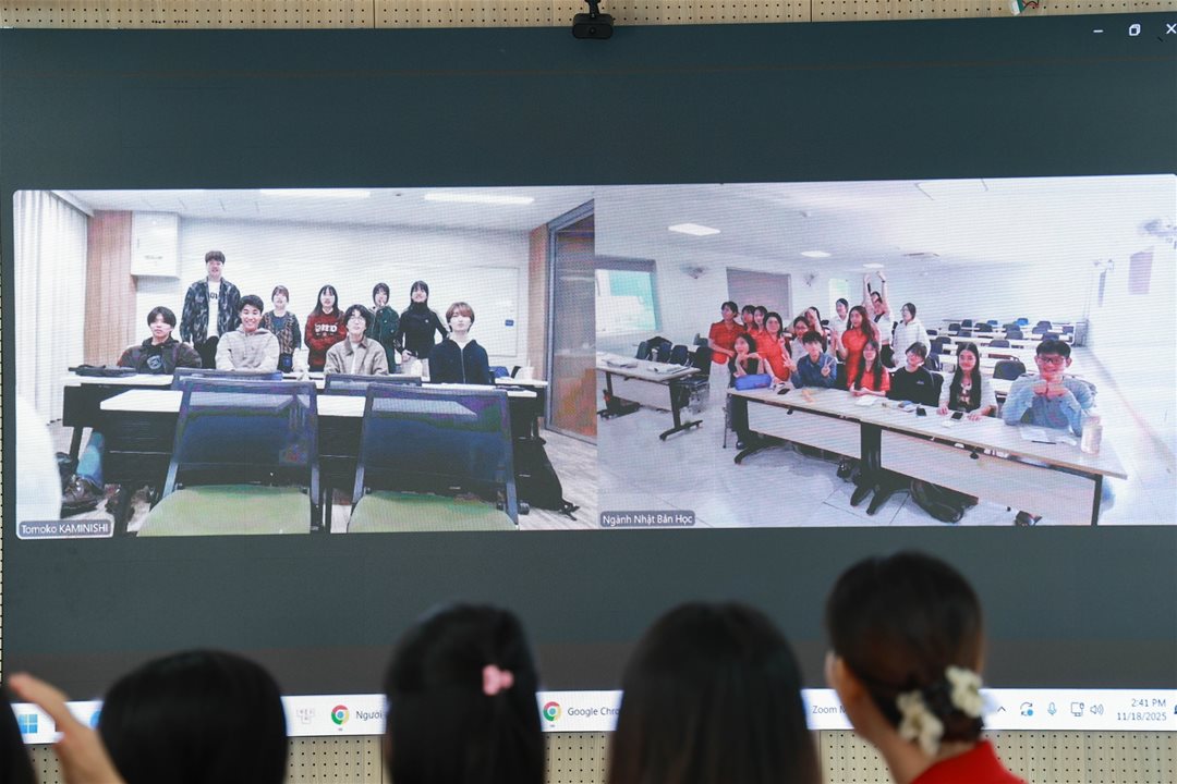 Trong buổi giao lưu đầu tiên, sinh viên hai trường đã giới thiệu bản thân, chào hỏi và trò chuyện bằng tiếng Nhật, giúp rèn luyện kỹ năng giao tiếp, nâng cao sự tự tin và hiểu thêm về văn hóa giao tiếp của sinh viên Việt Nam – Nhật Bản. Ở buổi giao lưu thứ hai vào ngày, không khí càng trở nên cởi mở hơn khi các bạn cùng giới thiệu những địa điểm du lịch nổi tiếng, qua đó mở rộng góc nhìn văn hóa và tiếp tục hoàn thiện khả năng sử dụng tiếng Nhật trong bối cảnh thực tế.